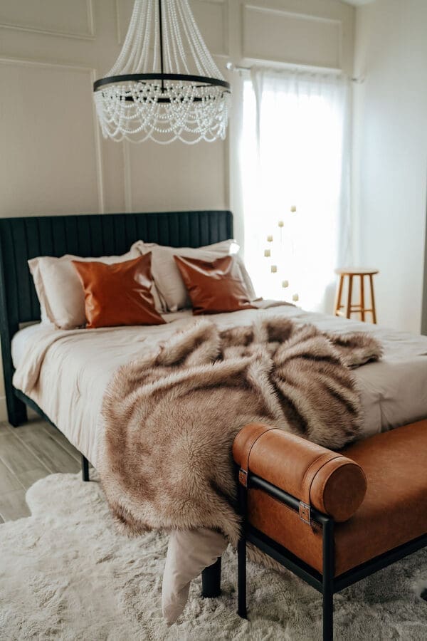🛏️ Queen-Sized Tufted Bed – The ultimate setting for soft, romantic, and bold imagery.